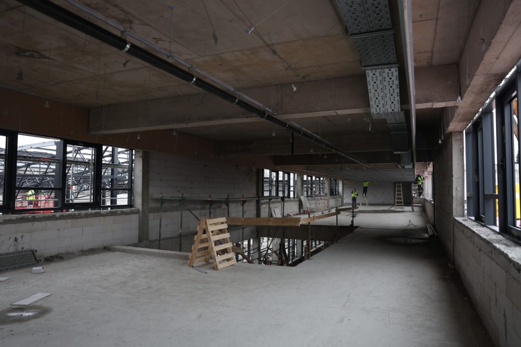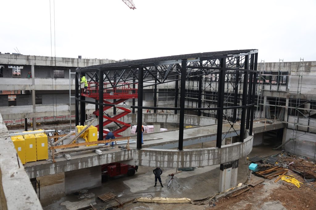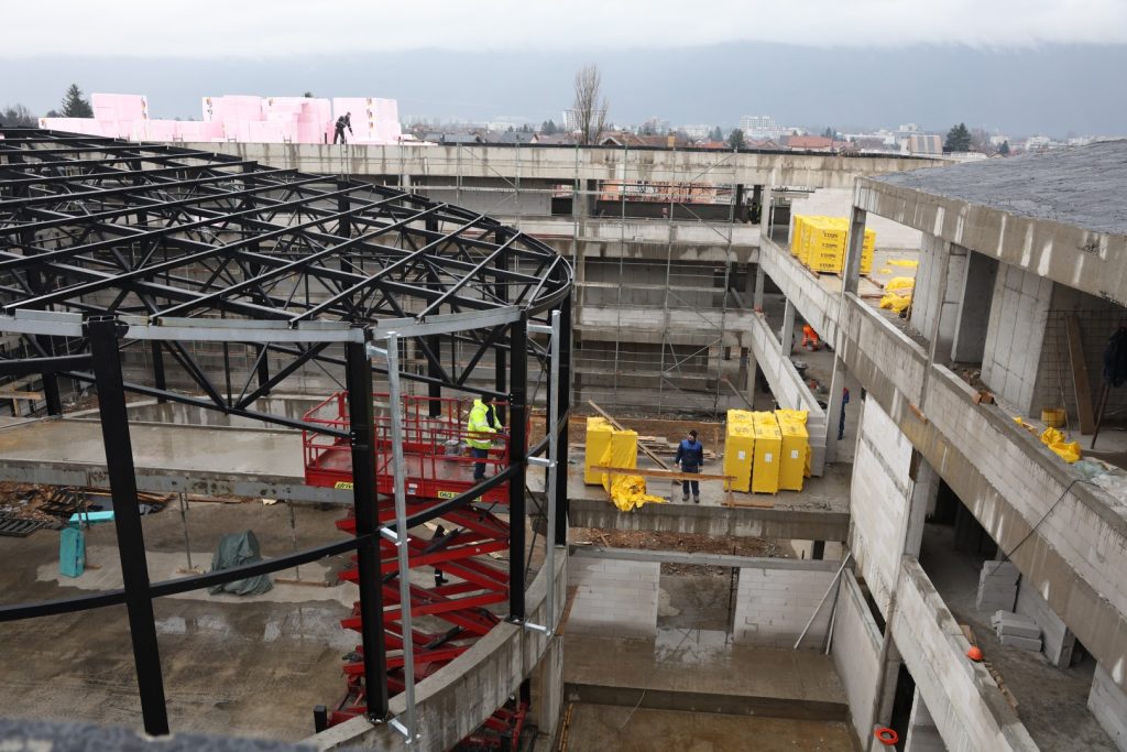 U toku je montaža čelične konstrukcije sportske dvorane, čime objekat dobija svoje jasne arhitektonske obrise. Istovremeno se unutar objekta izvode intenzivni zidarski radovi, kao i postavljanje podova, pregrada i plafona. Ugrađuje se i savremena aluminijska fasada koja će, pored estetske vrijednosti, osigurati visoke standarde energetske efikasnosti i dugotrajnosti objekta.